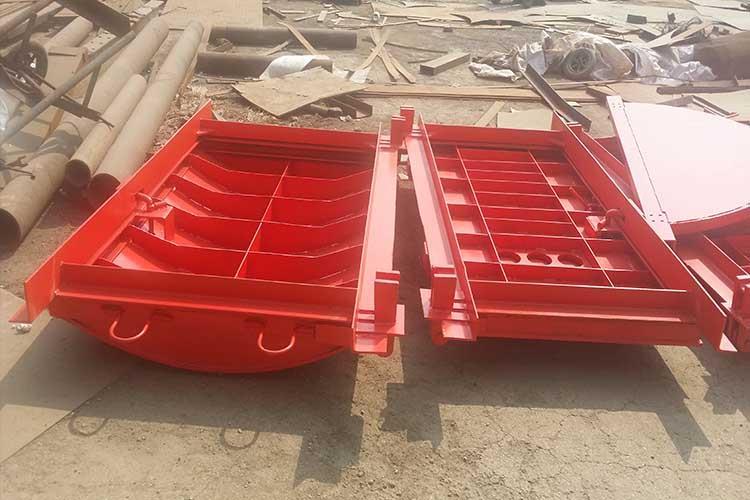抗沖擊波活門與密閉門組合使用,安裝在炸藥庫兩邊配合使用,通風(fēng)活門組分為3組,使用時可根據(jù)井下材料庫需要風(fēng)量和總回風(fēng)道負(fù)壓值,確定通風(fēng)活門組數(shù),抗沖擊超壓能力為2500Kp??箾_擊波活門用于井下爆炸材料庫和爆炸材料發(fā)放硐室,起隔離作用阻止爆炸沖擊波及爆炸產(chǎn)生的火焰、有毒氣體向外部巷道擴(kuò)散。